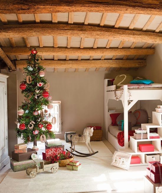 Durante estos días, hemos visto una Navidad elegante, una Navidad multicultural, una Navidad que nos arropa... Pero, si hay niños en casa, debemos procurar que la decoración para estas fiestas cumpla plenamente con sus expectativas... Por eso, hoy, hemos elegido estas maravillosas fotografías de la revista "EL MUEBLE"... que nos parecen, la opción perfecta para que estas fiestas irrumpan con fuerza en su propio espacio y en todos y cada uno de los objetos con los que comparten su mundo cotidiano de fantasía...
